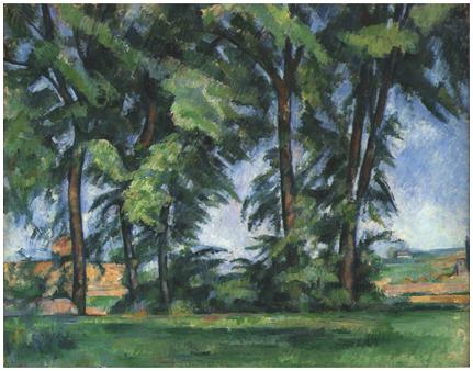 セザンヌの風景画が4枚並んでいる。これを同時に見ると樹木・葉のグリーンが鮮やか、その中に光りが見えるような気がした。